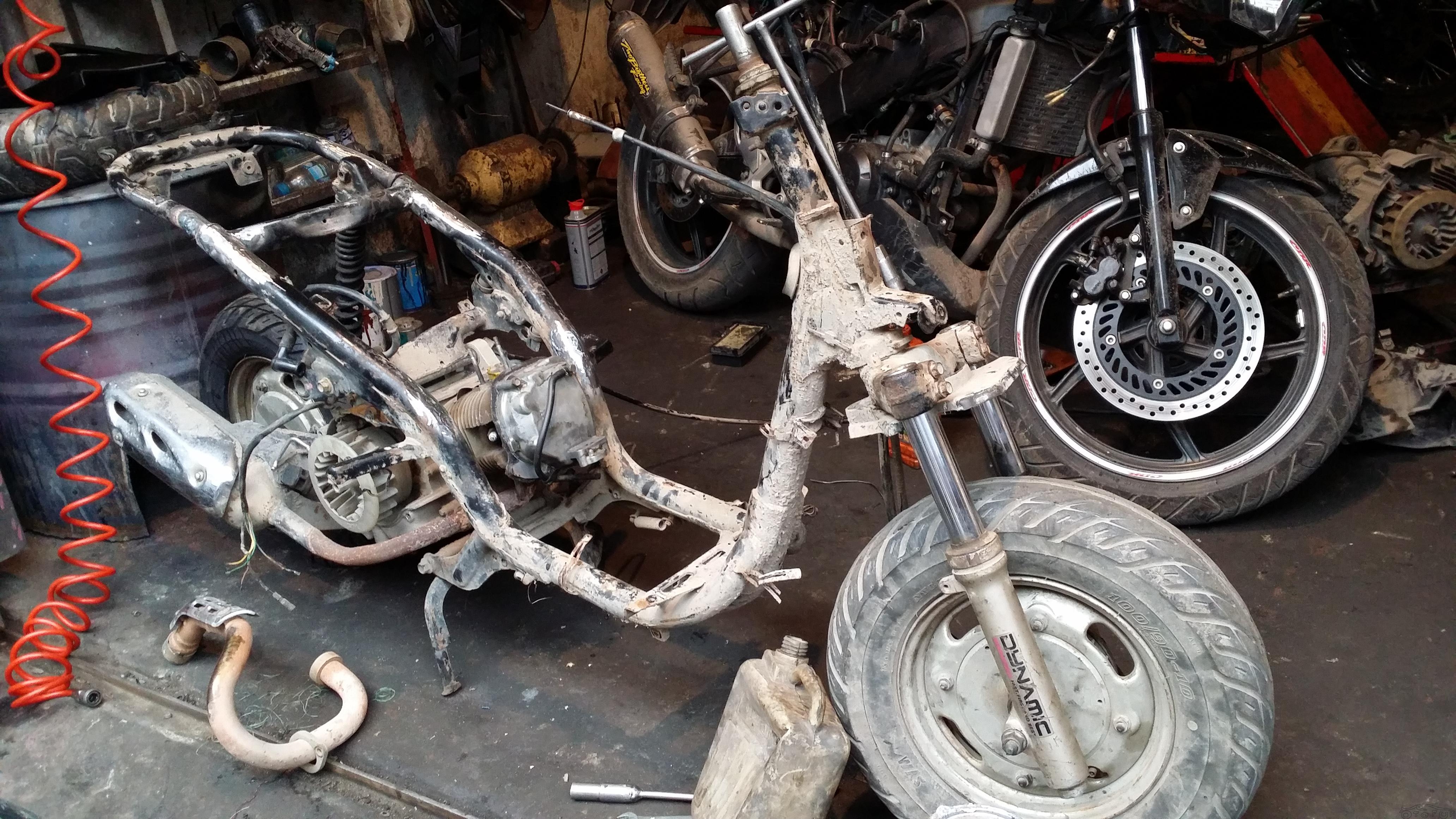 Bộ khung sau đó được tạo hình lại giống với mẫu xe tay ga của Honda.