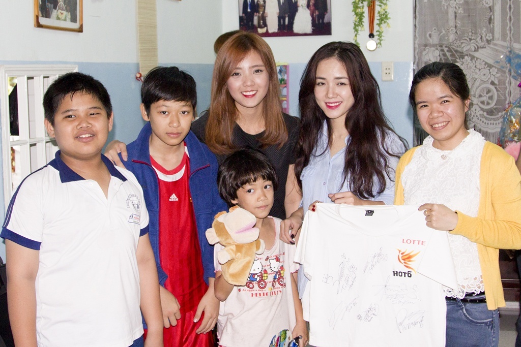 | Cùng với Hariwon, hot girl - diễn viên hài Lâm Á Hân và ca sĩ Phương Ly - em gái Phương Linh dành sự quan tâm đặc biệt cho các bé nhỏ tuổi tại Làng trẻ em SOS. |