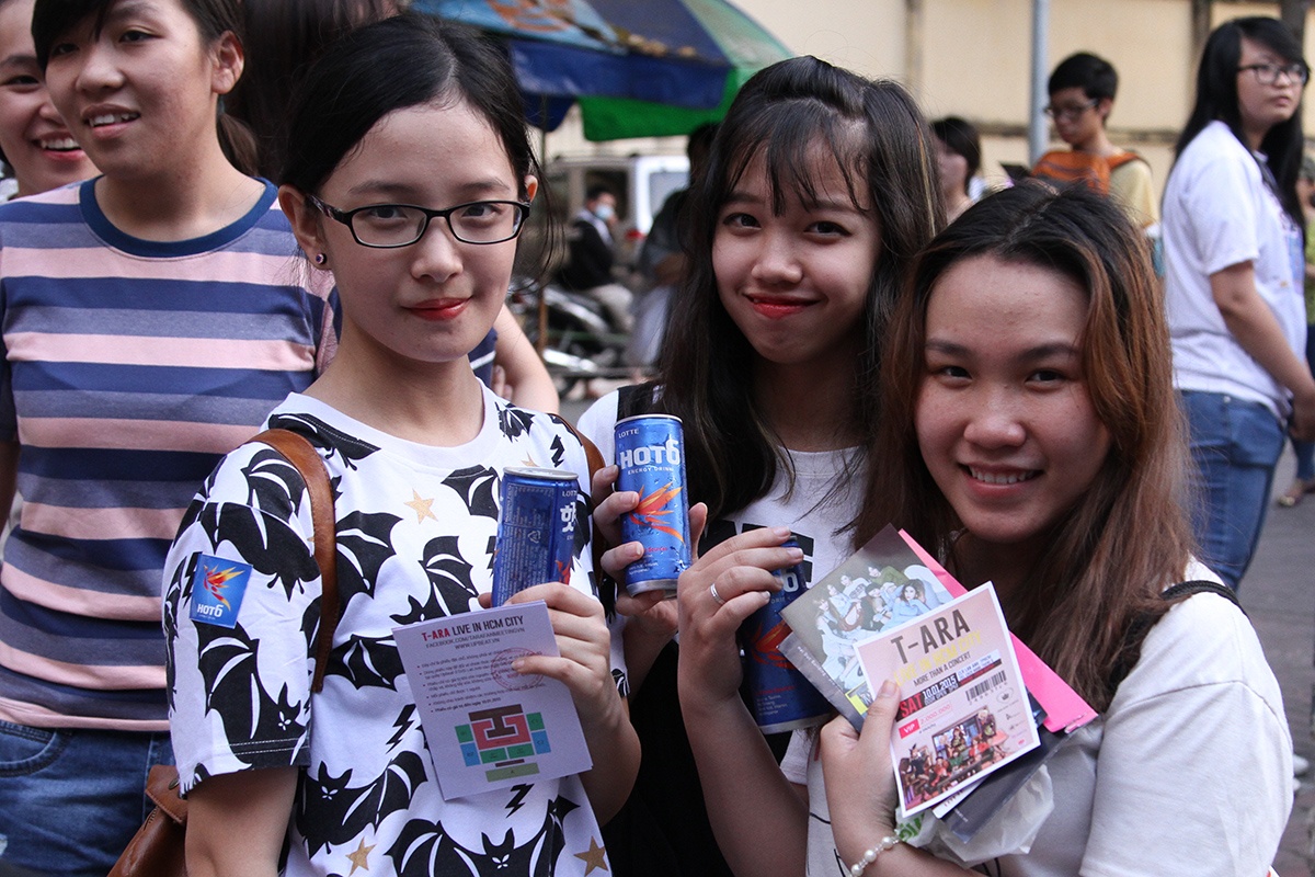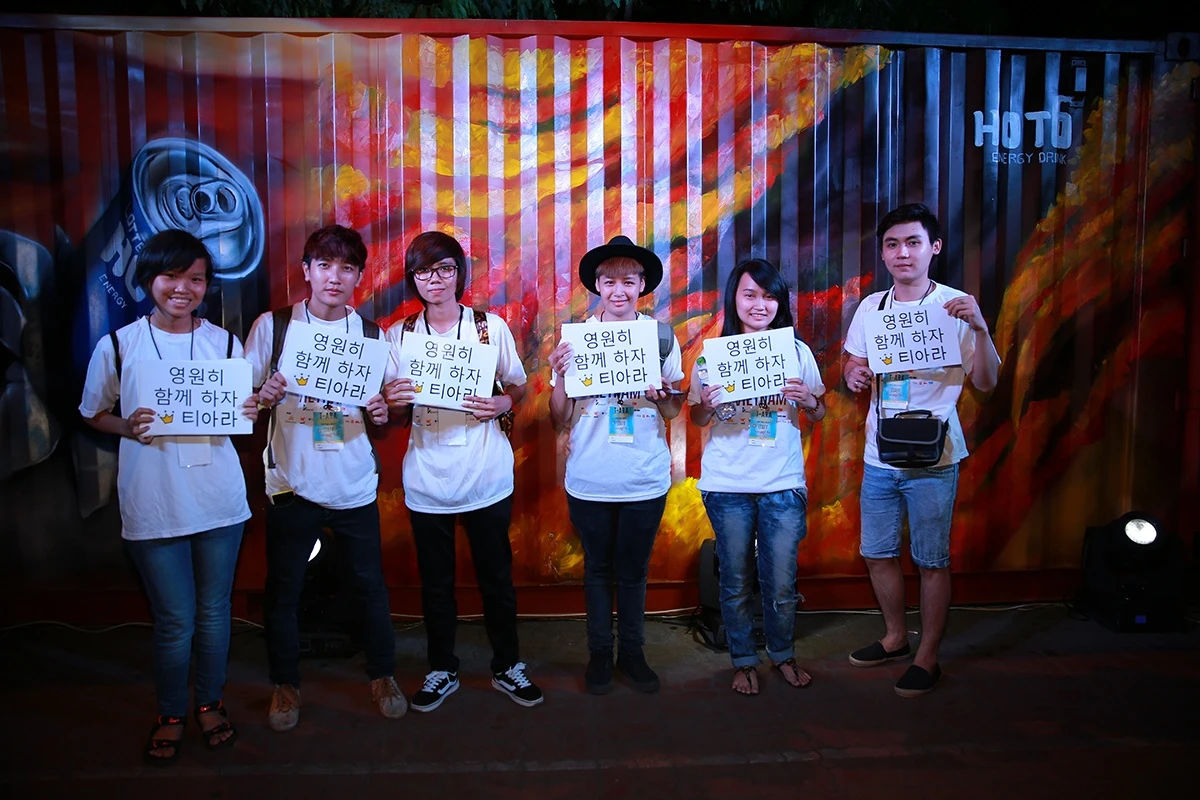 | Sức nóng của T-ara đã lan tỏa ngay ở phía ngoài sân khấu Lan Anh với các hoạt động tại chiếc container được vẽ với phong cách graffiti 3D. Để phục vụ và cổ vũ cho fan trong thời gian chờ đổi vé và check in, ban tổ chức khuấy động không khí bằng các màn nhảy cover loạt hit của T-ara trên nóc container của nhóm nhảy Panoma, đồng thời tặng HOT6 hương vị độc đáo, tươi mát và vị ga sảng khoải để xua đi cái nóng. |