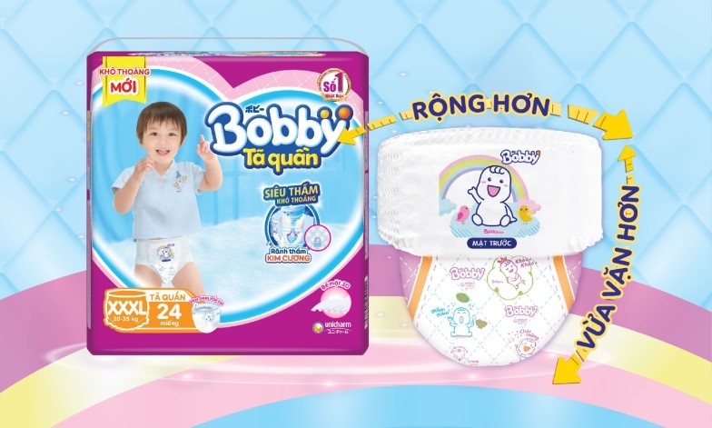 Với mong muốn đem đến sự thoải mái tối đa cho các em bé, Bobby - nhãn hiệu tã giấy thành viên của Tập đoàn Unicharm đến từ Nhật Bản đã ứng dụng công nghệ hiện đại, cho ra mắt sản phẩm tã quần cỡ XXXL phù hợp cho bé có cân nặng 20-35 kg.