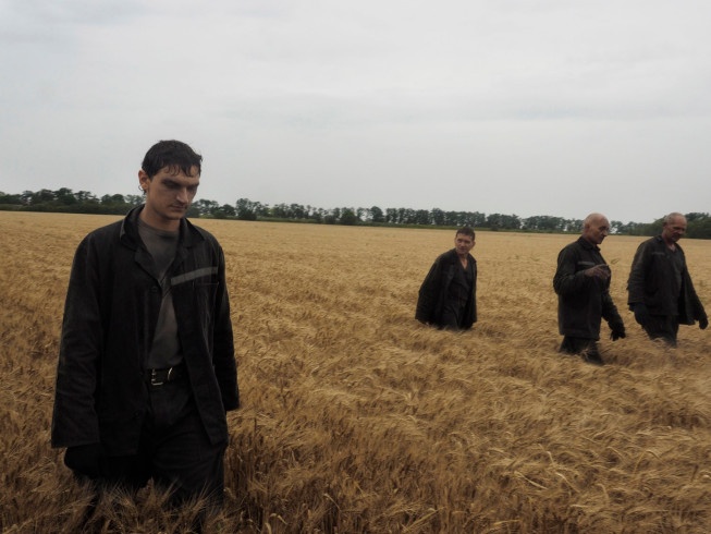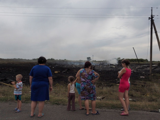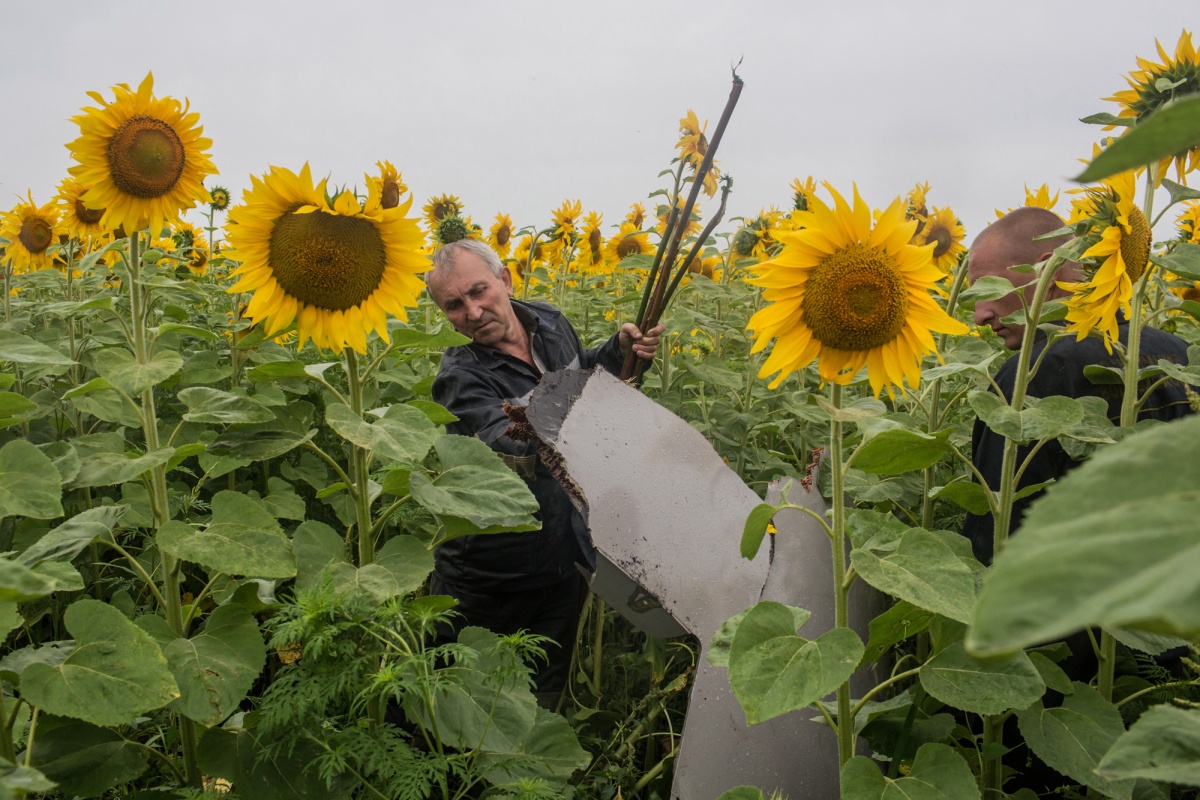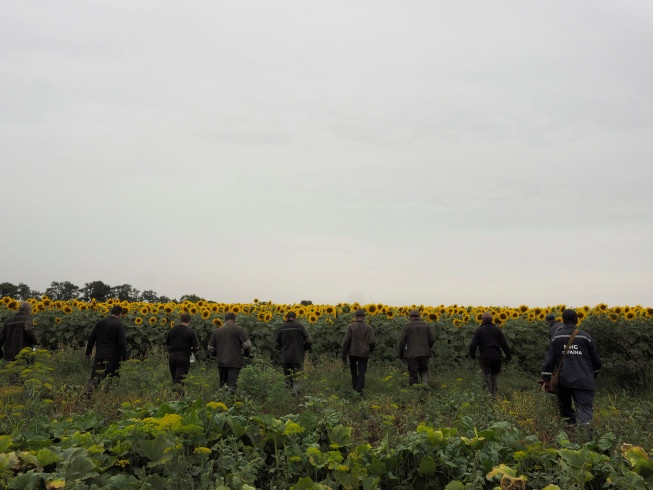 Những thợ mỏ đi dọc cánh đồng để tìm kiếm thi thể những hành khách thiệt mạng trong vụ chuyến bay MH17 rơi ở miền đông Ukraina. Vị trí mảnh vỡ và thi thể rơi xuống nằm gần một khu mỏ nên nhiều công nhân tham gia nỗ lực tìm kiếm nạn nhân. |