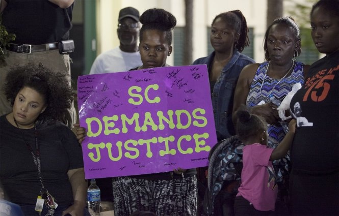 | Người dân North Charleston biểu tình đòi công lý cho nạn nhân Walter Scott. Ảnh: Reuters |