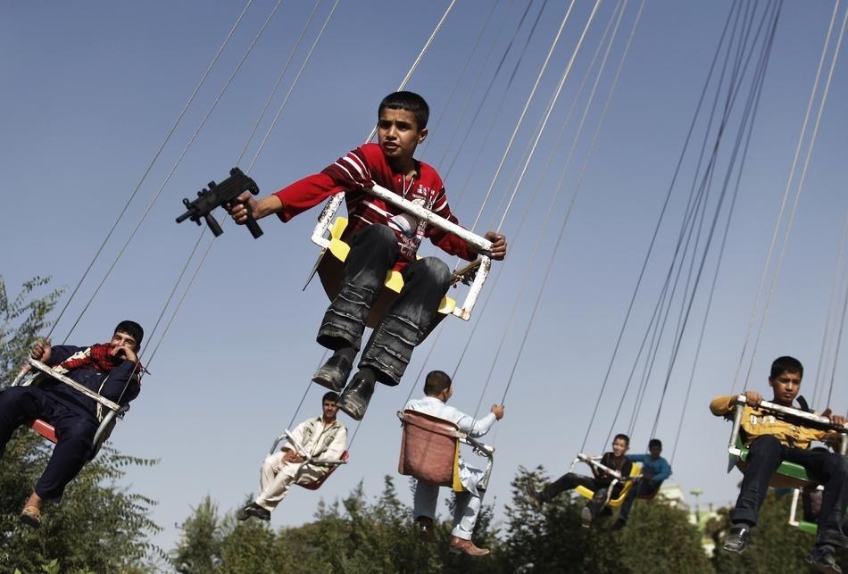 Trẻ em Afghanistan chơi súng trong dịp lễ hội Eid al-Fitr của người Hồi giáo ở Kabul, Afghanistan ngày 20/9/2009. Ảnh: Niedringhaus/AP