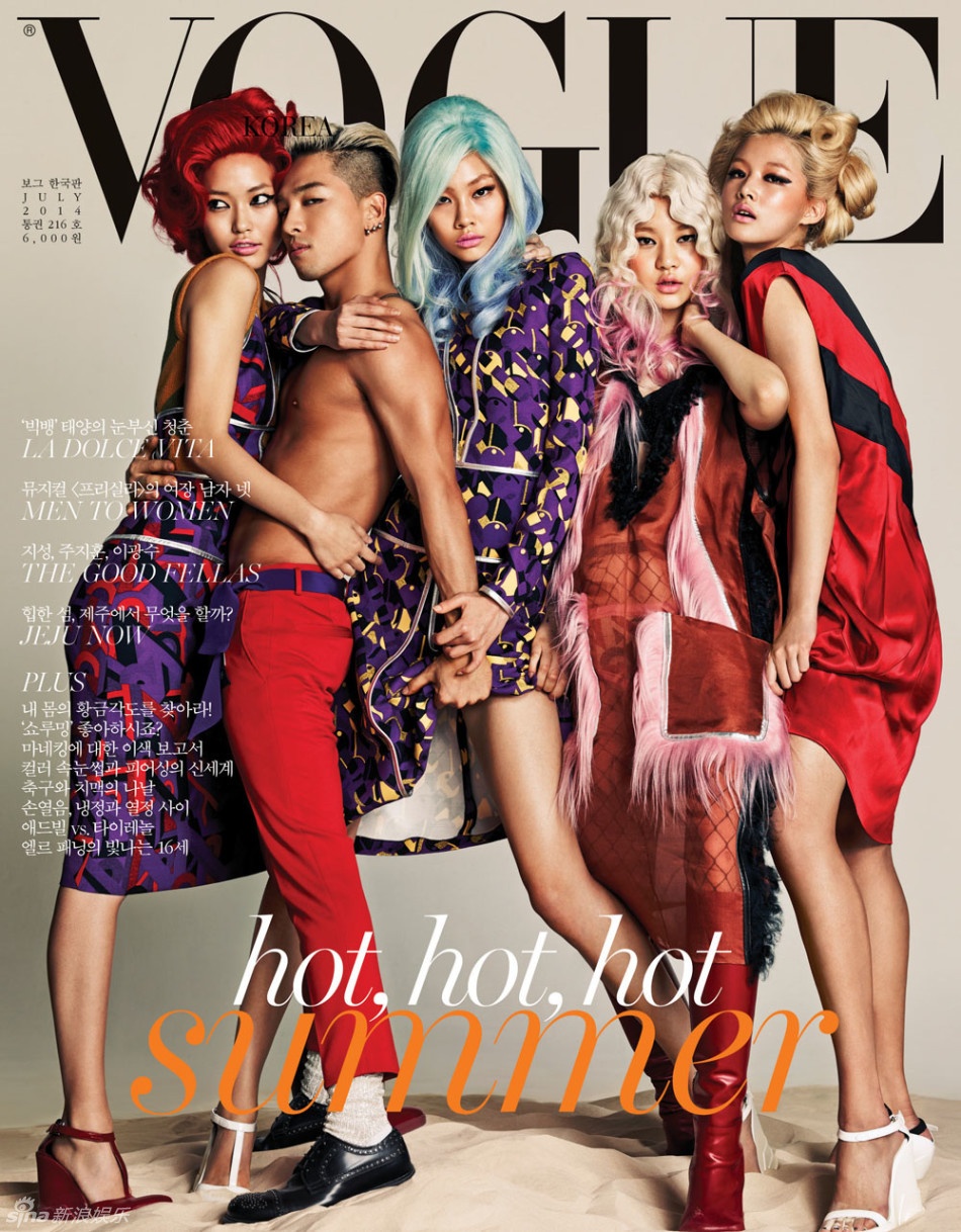 | Tae Yang và 4 người mẫu xinh đẹp "mở hàng" cho ấn phẩm hè nóng bỏng của Vogue. |