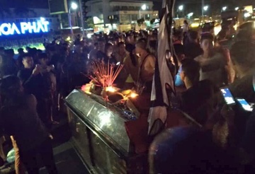 Cho rằng 2 nữ sinh tử vong có nhiều uẩn khúc, người thân đã mang quan tài đến trước trụ sở Công an huyện Yên Mỹ (Hưng Yên), tụ tập từ chiều đến đêm.