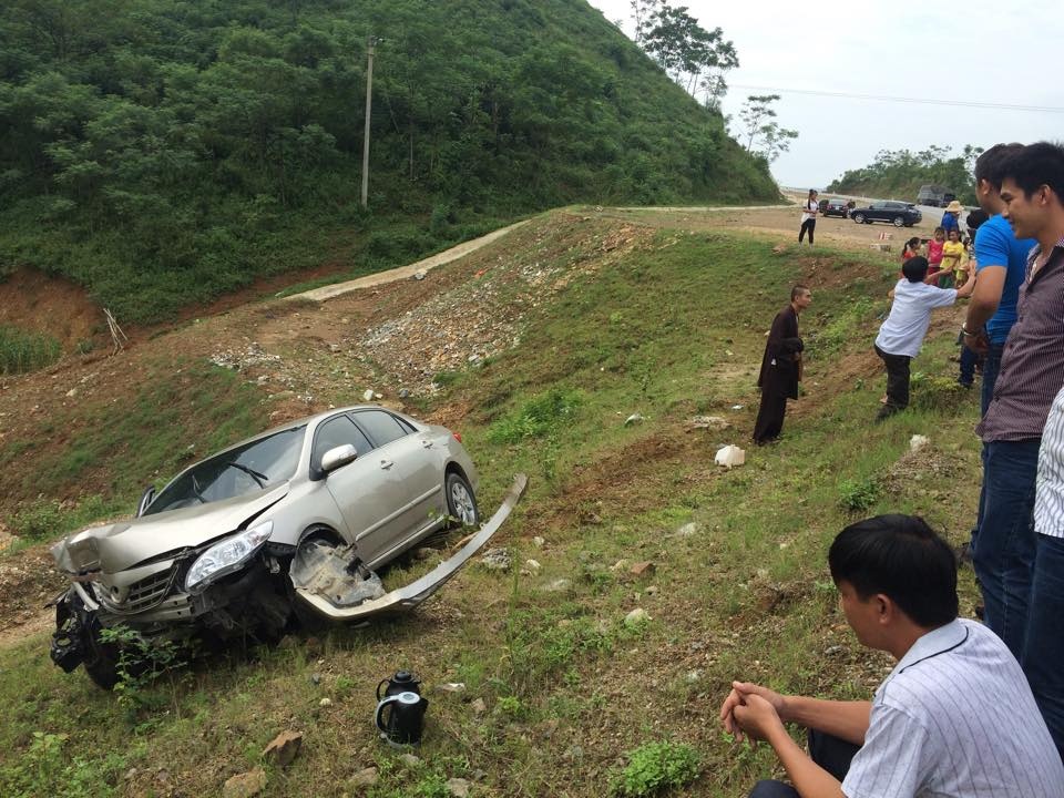 Một nhân chứng cho hay, ôtô chở hai sư thầy chạy từ Lào Cai về Hà Nội tới địa phận xã Gia Phú thì nổ lốp khiến người điều khiển mất lái đâm vào rào chắn và lao xuống vệ đường. Nhiều người đã dừng xe đưa tài xế và hai sư thầy bị thương ra ngoài.