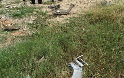 | Nhiều bộ phận trên xe bị vỡ vụn, vương vãi trên bờ cống chui gần đó. Ảnh: Nguyễn Hoàng Việt/otofun. |