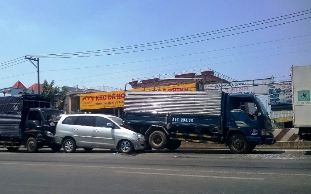 Tài xế Nguyễn Chánh Tính (23 tuổi, quê An Giang) điều khiển xe tải lưu thông phía sau ô tô 7 chỗ không kịp xử lý nên tông vào đoàn xe đang dính chặt phía trước.