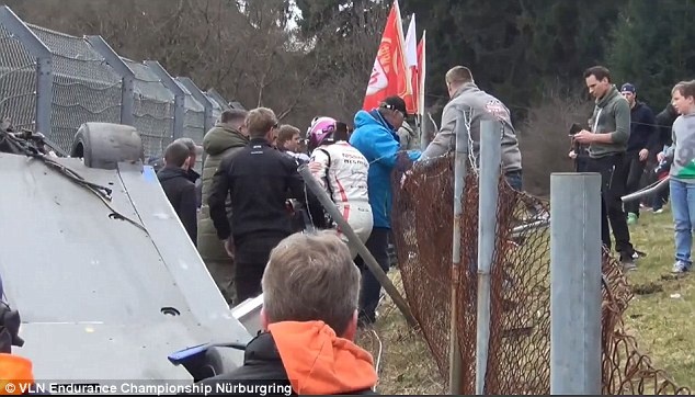| Tốc độ quá lớn khiến chiếc xe văng ra khỏi hàng rào và đâm vào nhóm người hâm mộ. Vụ tai nạn khiến một CĐV thiệt mạng và nhiều người khác bị thương. |