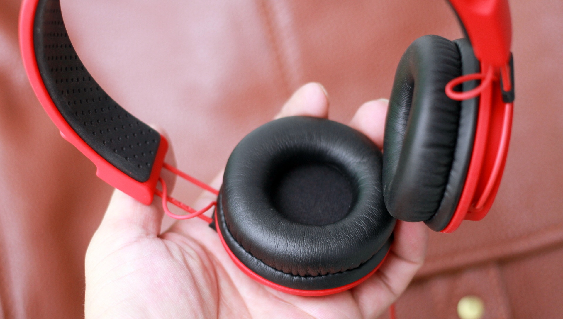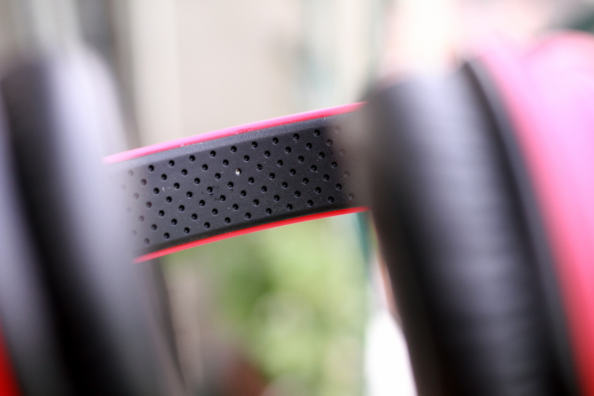Hai miếng đệm tai nghe bọc da, trông mềm mại, thoải mái khi đeo. Gọng tai nghe khá khỏe và chắc chắn, được làm bằng chất liệu TR90 Nylon, với lớp lót cao su mềm bên trong. Thiết kế này nhằm hạn chế tiếng ồn.
