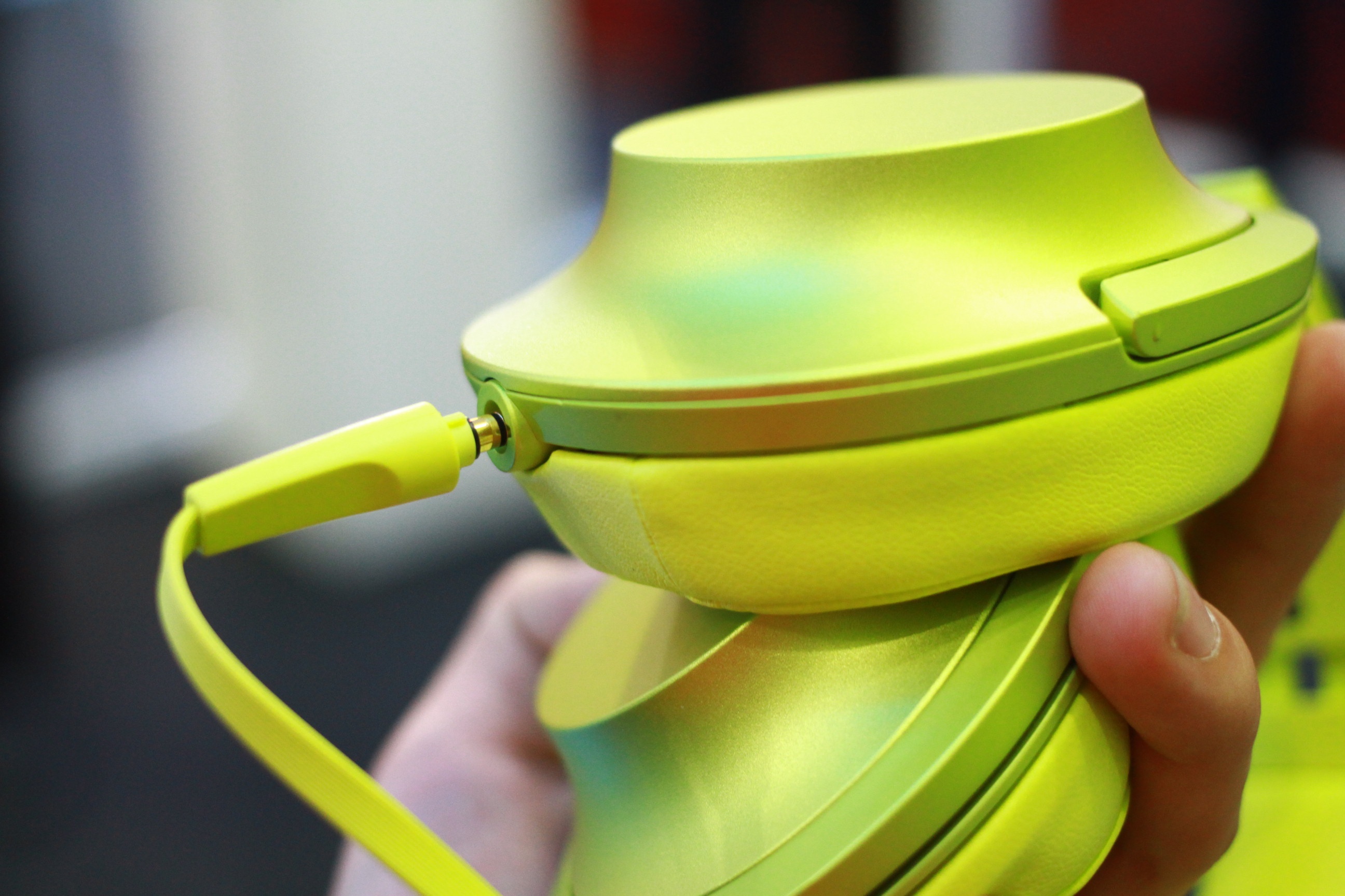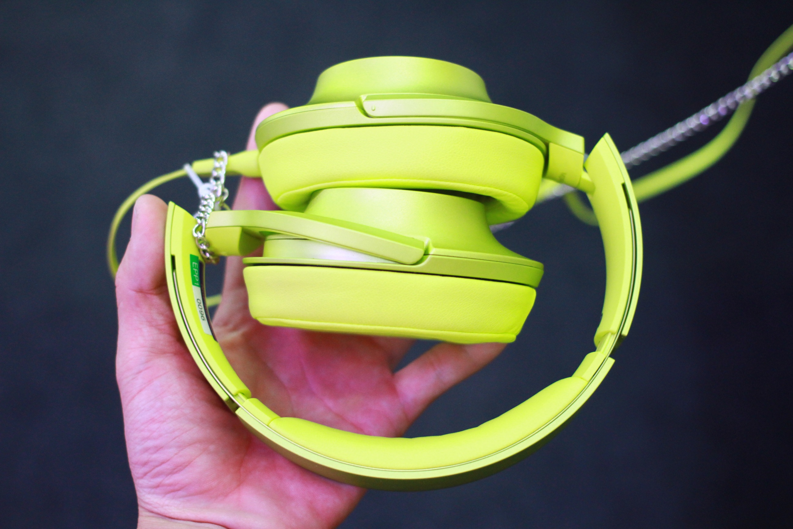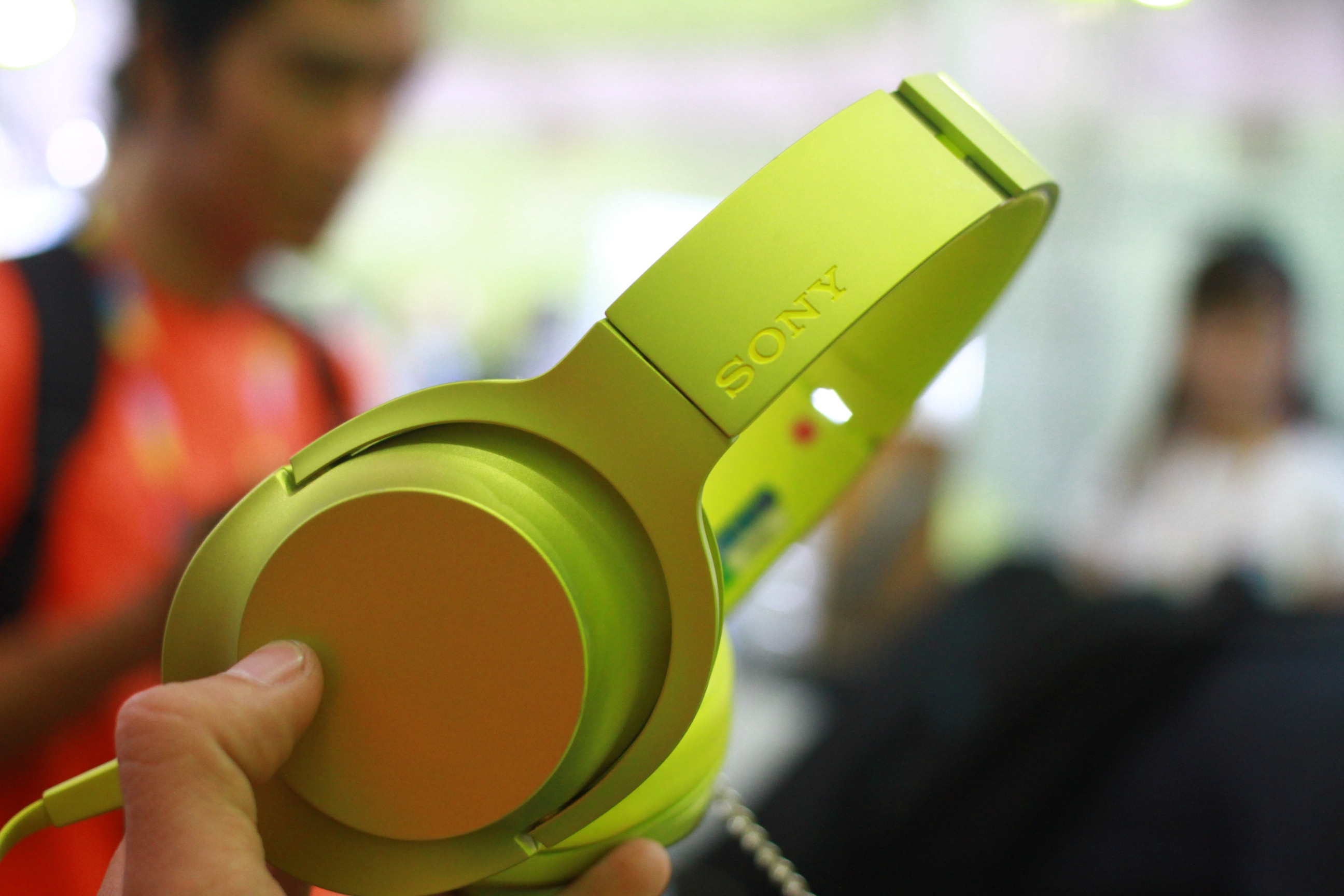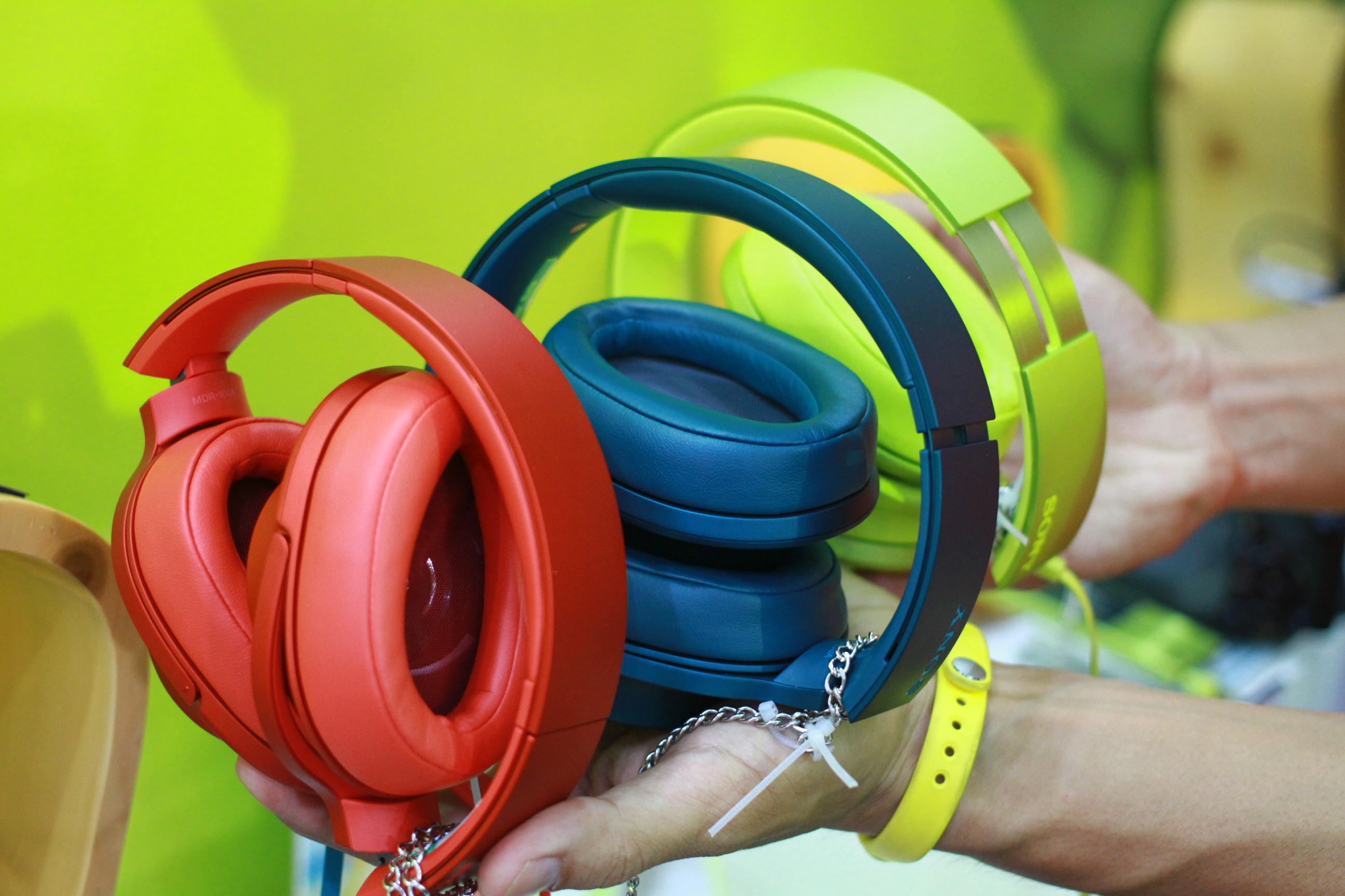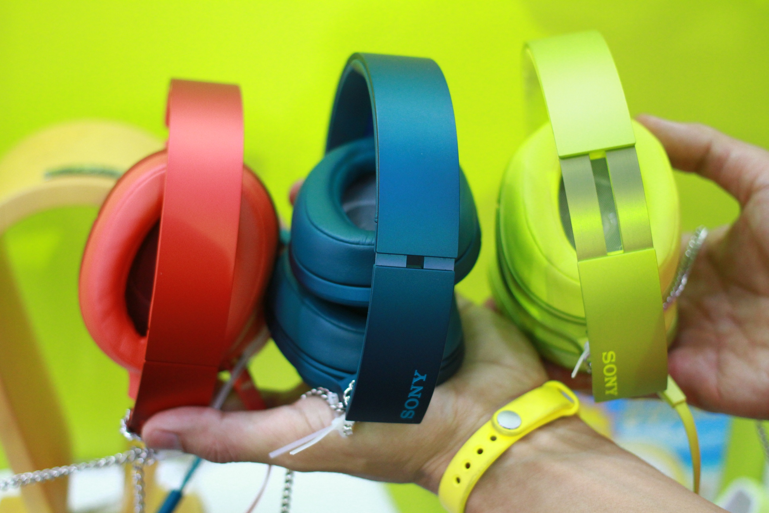 | Dòng tai nghe mới được Sony trưng bày tại sự kiện thường niên của họ. h.ear On có thiết kế dạng trùm đầu với nhiều màu: Xanh dương, đen, đỏ, vàng và hồng. |