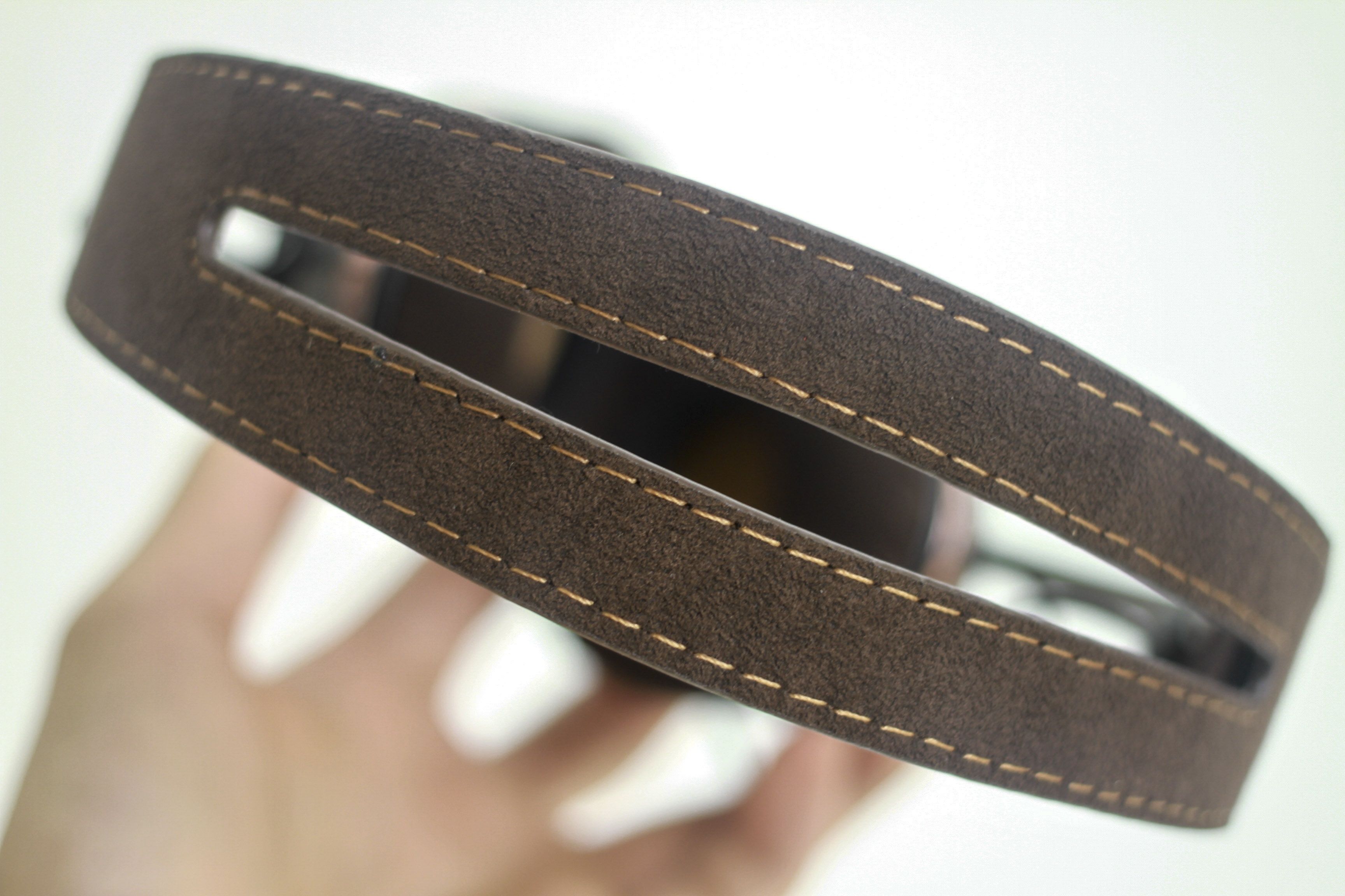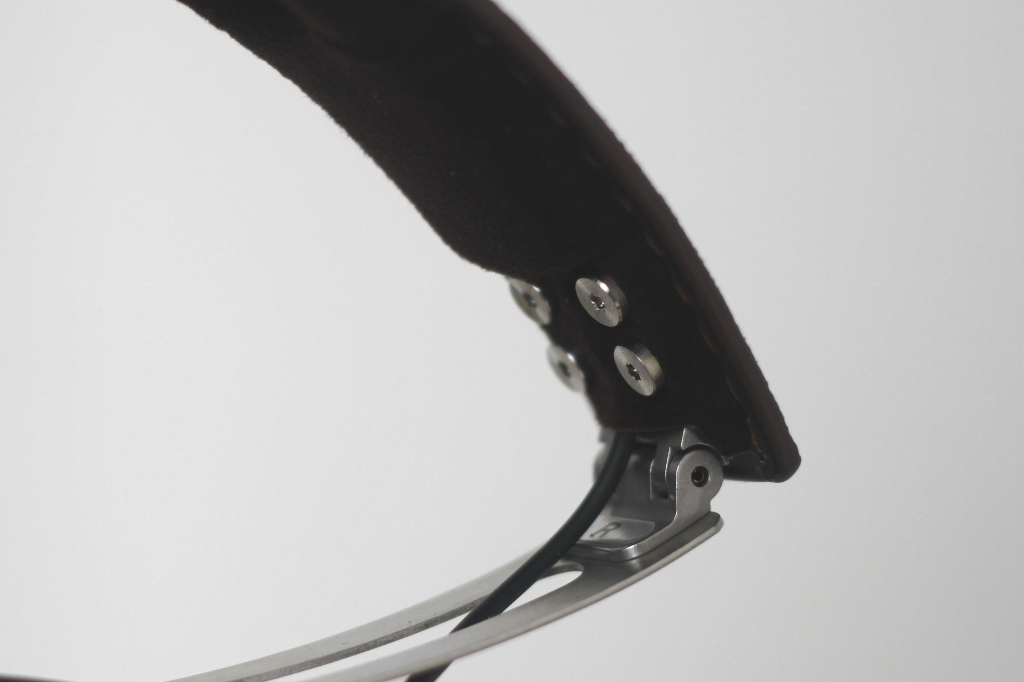 | Phần gọng được làm bằng thép không gỉ và bọc 1 lớp Alcantara. |