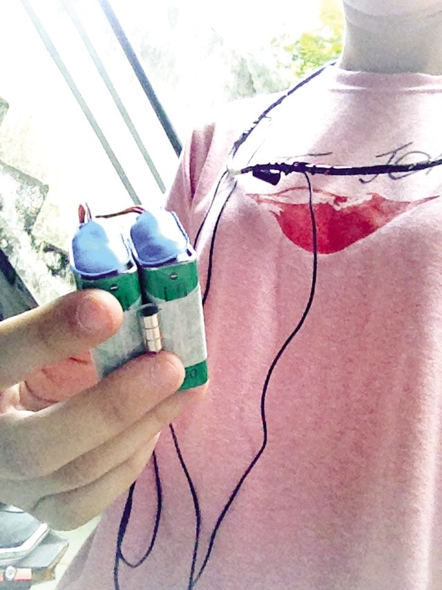 Để chứng minh, T hướng dẫn tôi: “Thí sinh chỉ cần cắm giắc vào điện thoại, nối bộ tai nghe vào pin, đeo máy phát cảm ứng vòng quanh cổ và dùng cổ áo để che. Chiếc tai nghe siêu nhỏ được thả lọt vào tai”.