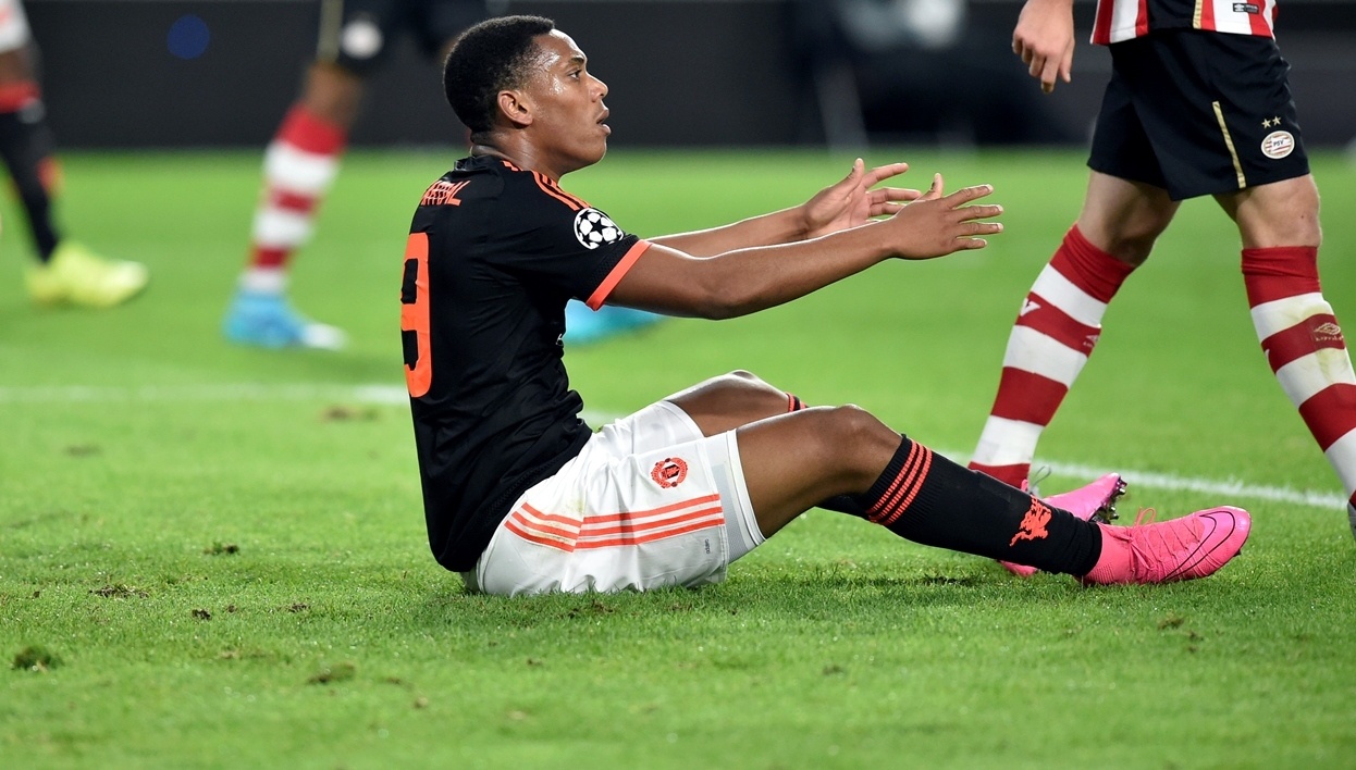 | Martial đang bất lực để tạo ra tác động cụ thể lên trận đấu. |