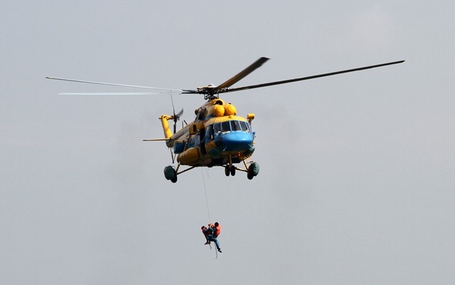 | "Phải đạt độ cao nhất định mới nhảy được dù", Trung tướng Võ Văn Tuấn nói. Ảnh chiếc Mi 171 số hiệu 01 trong một lần diễn tập cứu nạn: Nguyễn Hưng. |