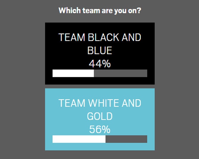 Thăm dò trên báo Anh Metro về màu của chiếc váy cho thấy hai luồng ý kiến là ngang ngửa: Nhóm xanh và đen; Nhóm trắng và vàng. |
