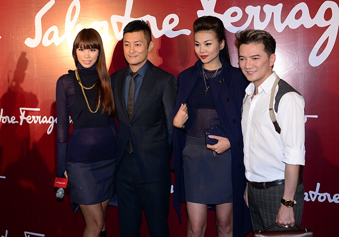 | Á hậu Thụy Vân (bên trái) cùng ca sĩ Dương Triệu Vũ chụp hình kỷ niệm với Dư Văn Lạc. Nữ đại gia Thủy Tiên và ca sĩ Đàm Vĩnh Hưng gần đây khá thân thiết khi thường xuyên cùng xuất hiện. |