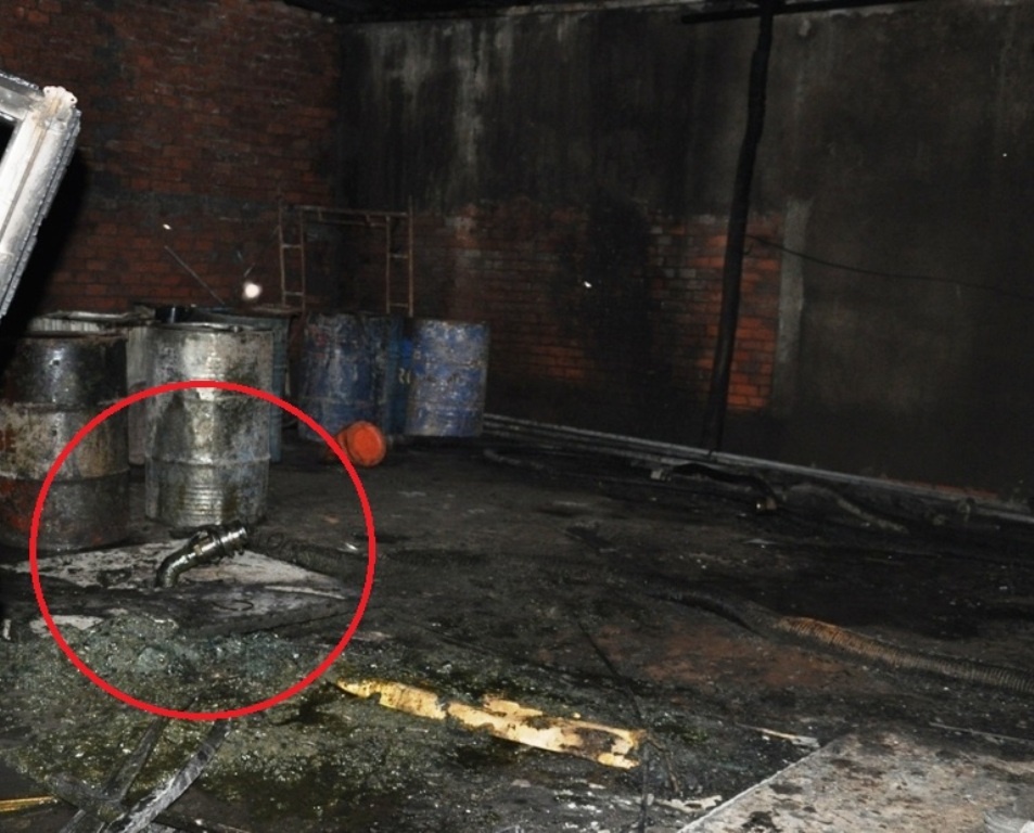 | Tài xế Long dũng cảm khóa van bơm xăng xuống bồn ngầm (trong vòng tròn đỏ) rồi điều khiển xe bồn chạy ra khỏi cây xăng trong tình trạng bỏng nặng. |
