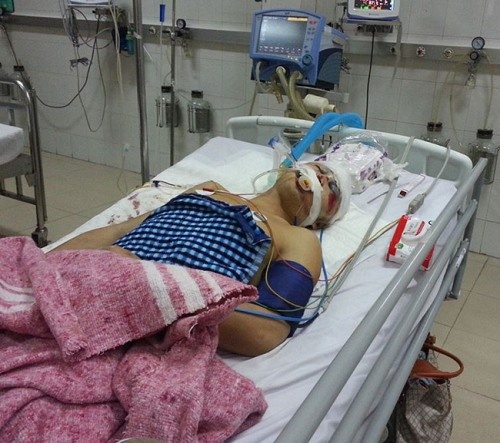 | Nạn nhân Thành đang nằm điều trị tại BV Đa khoa Hà Đông. |