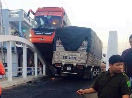 Xe Phương Trang chở 30 hành khách leo lên thành cầu. 4h30 2/2 xe tải biển kiểm soát tỉnh Cần Thơ do tài xế Ngô Việt Kiều (41 tuổi, ngụ TP Cần Thơ) điều khiển lưu thông trên quốc lộ 80, hướng từ TP Rạch Giá đi TP Cần Thơ, tới cầu Láng Sen, thuộc xã Thạnh Thới (Vĩnh Thạnh, Cần Thơ) thì va chạm với với ôtô khách biển kiểm soát TP HCM hãng Phương Trang do tài xế Nguyễn Thiện Trung (34 tuổi, ngụ tỉnh Kiên Giang) điều khiển lưu thông chiều ngược lại.