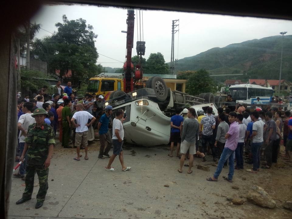 Nhân chứng Nguyễn Huy cho biết, trong lúc ôm cua, chiếc xe trọng tải lớn bất ngờ đâm và xới tung 10 m dải phân cách cứng. Xe container lật nghiêng trên đường, đầu xe lật ngửa. Tài xế và phụ xe mắc kẹt trong cabin.