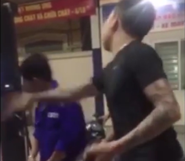 Khi nhân viên bán xăng giải thích không bơm nối số hay gian lận, nam thanh niên bất ngờ tát nhân viên bán xăng, sau đó trả tiền rồi lên ôtô.