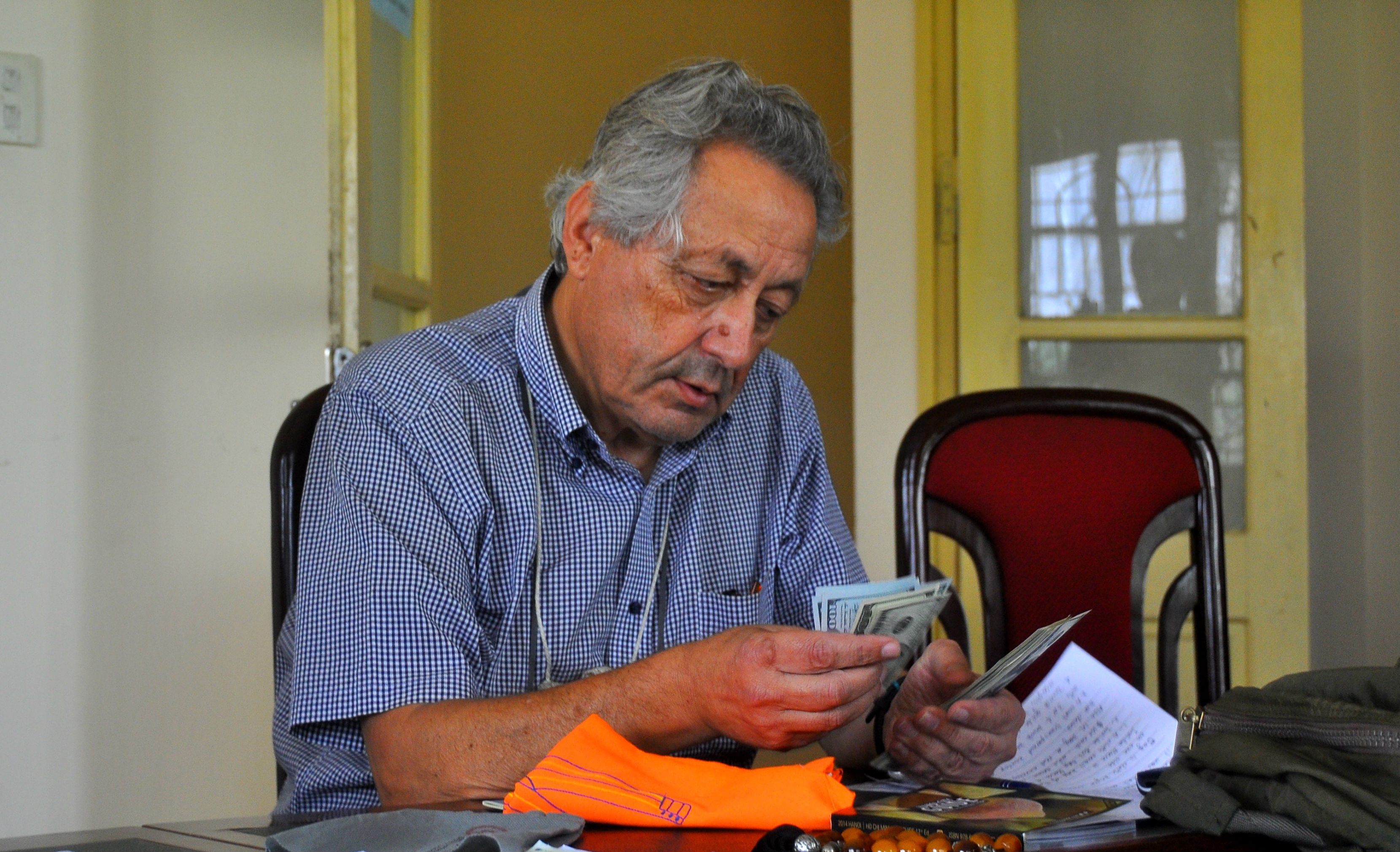 | Ông Vlassopoulos kiểm lại số tài sản đánh rơi. Ảnh: Hoàn Nguyễn. |