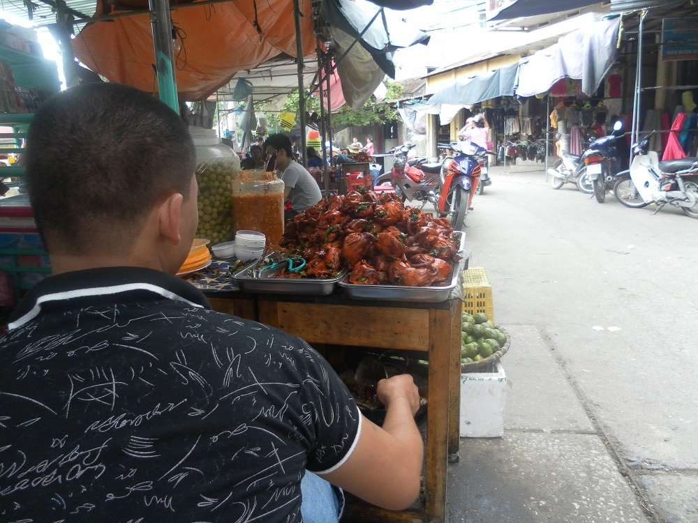 Chợ Ninh Hiệp (Gia Lâm-Hà Nội) không chỉ nổi tiếng với việc đổ buôn vải vóc, quần áo mà còn nổi tiếng với những “mâm chim quay” đỏ quạnh, bắt mắt.