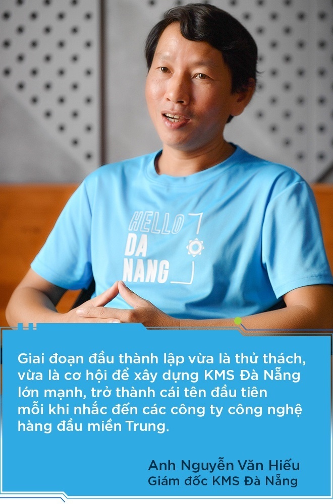 “Không ít ứng viên hoài nghi về công ty khi chưa có văn phòng hiện hữu tại Đà Nẵng, phỏng vấn theo hình thức online và nhân sự đều đang ở TP.HCM. Tuy vậy, tôi không xem đó là cản trở. Ngược lại, đó vừa là thử thách, vừa là cơ hội để tôi quyết tâm xây dựng một KMS Đà Nẵng lớn mạnh, trở thành cái tên đầu tiên mỗi khi nhắc đến các công ty công nghệ hàng đầu miền Trung”, anh Hiếu nhớ lại.