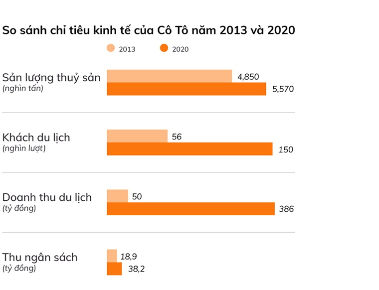 Bí thư Huyện ủy, Chủ tịch UBND huyện Cô Tô Lê Hùng Sơn nói rằng điều quan trọng nhất khi có điện và nước là giúp đời sống người dân được cải thiện về mọi mặt, kinh tế đạt được những bức phát triển quan trọng. Thu nhập bình quân của người dân Cô Tô đạt 4.500 USD/năm, cao hơn mức chung của cả nước hơn 1.000 USD.
