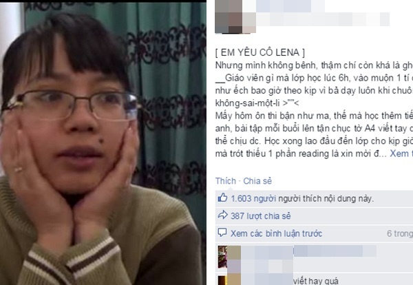 Theo tác giả bài viết, “tội trạng” lớn nhất của cô Lê Na là chăm lo quá mức cho học viên. Không chỉ dừng lại ở việc giảng dạy, cô còn tư vấn sửa CV, giúp các bạn tìm được những công việc tốt.