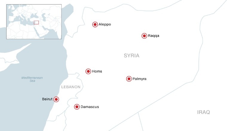 | Bản đồ các thành phố trên tuyến đường đến Raqqa. Đồ họa: CNN |