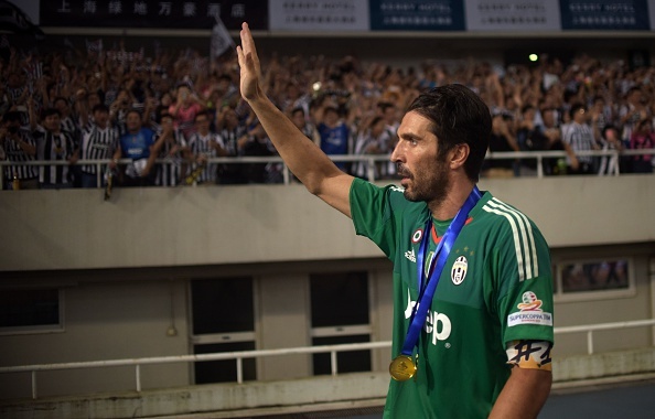 | Thủ môn số 1 của đội tuyển Italy đi quanh sân vận động Thượng Hải (Trung Quốc) để cảm ơn người hâm mộ đã đồng hành và ủng hộ Juventus. |