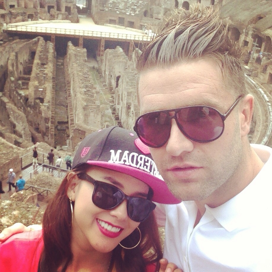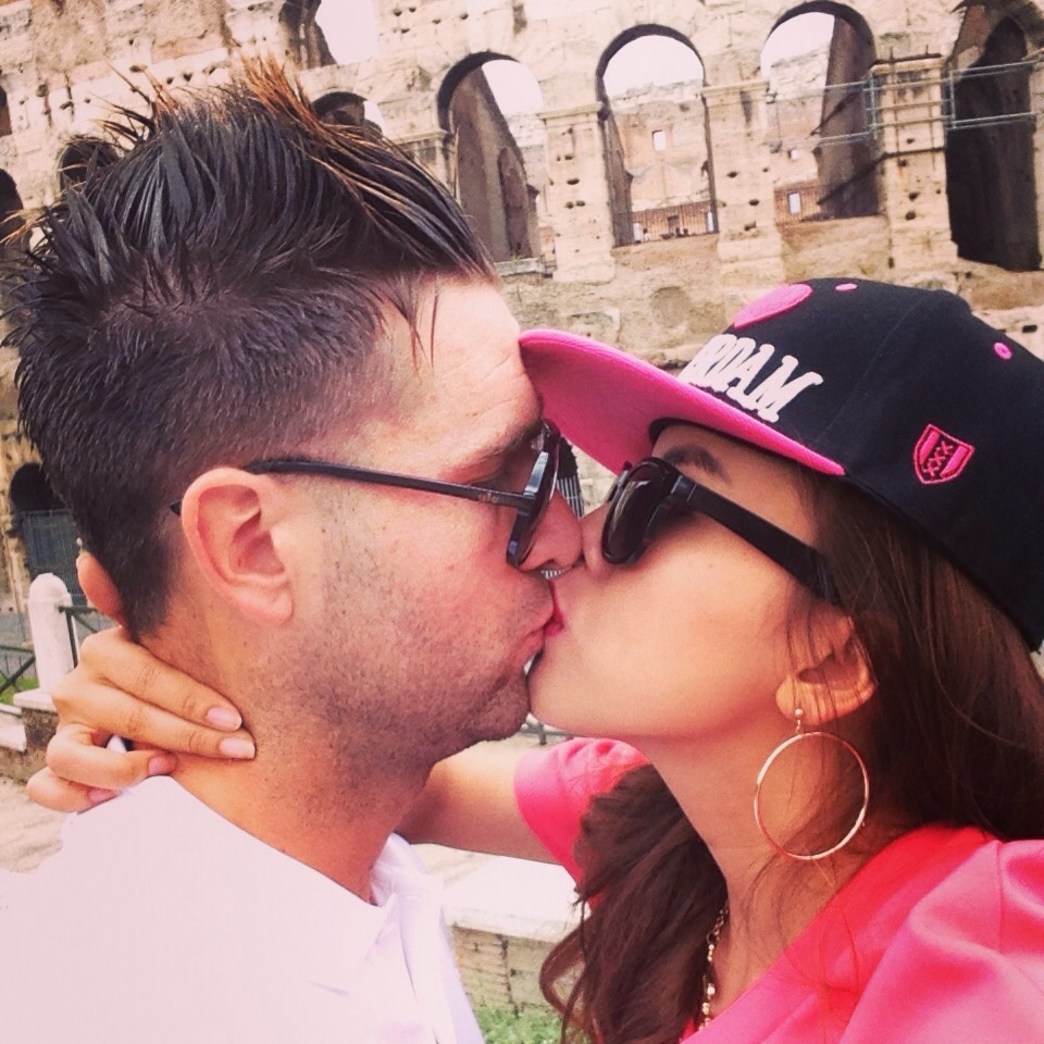 | Trao nhau nụ hôn đắm đuối ở Coliseum nổi tiếng tại Roma. |