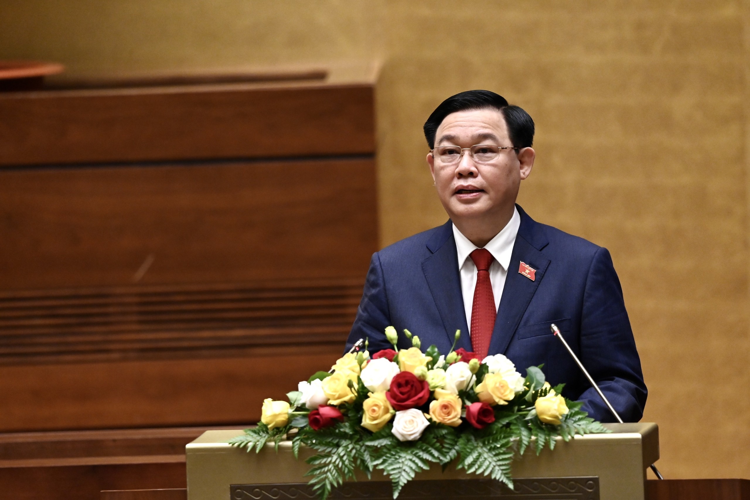 “Với cương vị Chủ tịch Quốc hội, tôi nguyện sẽ đem hết sức mình, cùng tập thể Ủy ban Thường vụ Quốc hội, các cơ quan của Quốc hội, các cơ quan của ủy ban Thường vụ Quốc hội và các vị đại biểu kế thừa, phát huy truyền thống tốt đẹp và thành tựu to lớn của Quốc hội qua các thời kỳ, tiếp tục đổi mới phương thức, nâng cao chất lượng, hiệu quả hoạt động của Quốc hội vì mục tiêu tối thượng phụng sự lợi ích của quốc gia, dân tộc, vì hạnh phúc của nhân dân”, tân Chủ tịch Quốc hội Vương Đình Huệ cam kết.