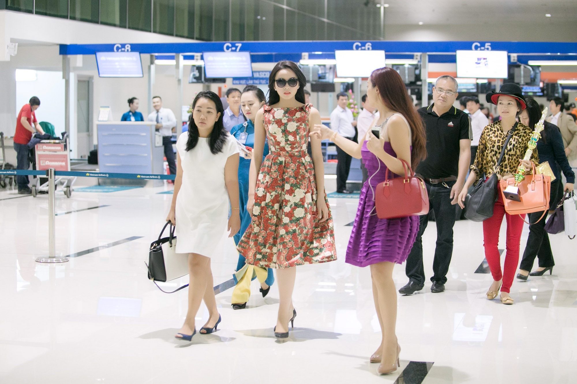 | Hoa hậu xuất hiện ở sân bay với phong thái nhẹ nhàng, kiều diễm. Cô được cho là có phong cách quý phái của một hoa hậu bởi vẻ đẹp đằm thắm, tác phong nhẹ nhàng, lối nói chuyện dễ nghe. |