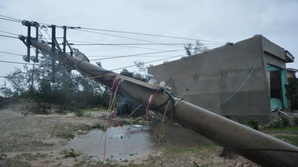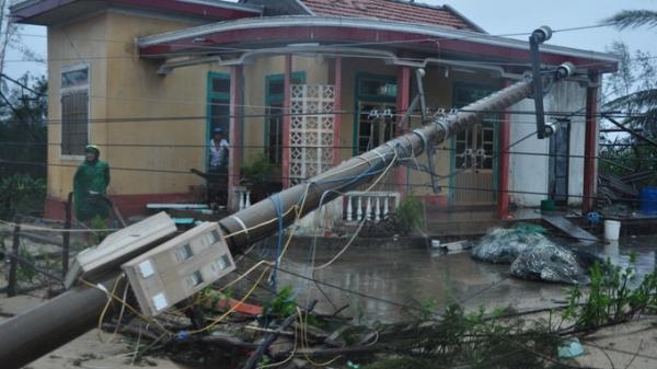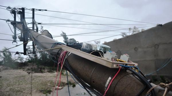 | Hàng loạt cột điện bị gió bão quật ngã. |