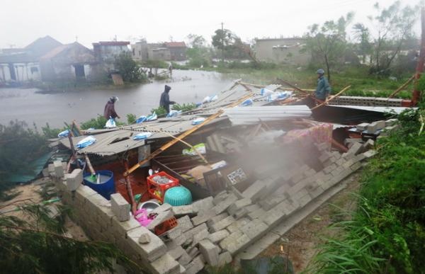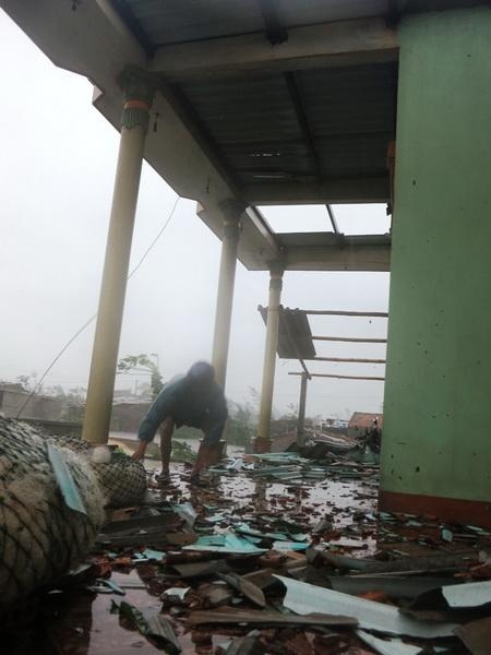 | Nhà bà Trương Thị Loan, thôn Hiếu Trung, xã Hải Ninh (Quảng Ninh, Quảng Bình) bị gió bão quật dổ sập |