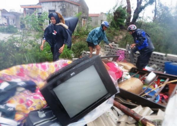 | Người dân xã Hải Ninh, Quảng Ninh(Quảng Bình) cứu vớt một ít tài sản trong gió bão. |