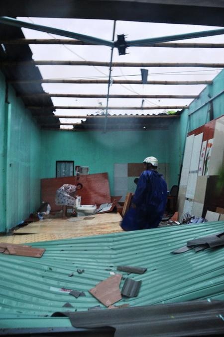 | Nhiều nhà tốc hết phần mái chỉ còn trống không một bộ khung. |