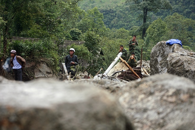 | Lực lượng dân quân, bộ đội và nhiều lực lượng khác được huy động để khắc phục. |