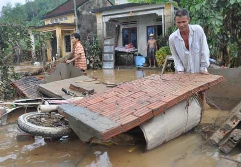 | Chỉ sau một đêm, lũ đã làm nhiều ngôi nhà ở xã Hành Thiện bị sập hoàn toàn. |