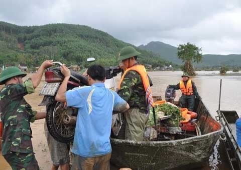 Phải nhờ tới ca nô của bộ chỉ huy quân sự tỉnh, chúng tôi mới có thể tiếp cận được với vùng lũ còn chia cắt của huyện Nghĩa Hành, bởi mọi phương tiện hầu như không thể tiếp cận được.