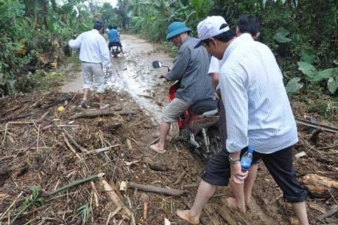 Sau lũ, đường về làng toàn bùn non ngập ngụa đến tận đầu gối. Nước rút đến đâu, cảnh xơ xác, hoang tàn hiện ra đến đó. Xác trâu, bò, heo, gà nằm lẫn lộn với tủ, giường, bàn, ghế vất vưởng khắp nơi trước cái nhìn bất lực của con người. Xót của, nhiều gia đình cố đào bới với hy vọng nhặt nhạnh những gì còn xót lại trong đống bùn nhão nhoẹt.