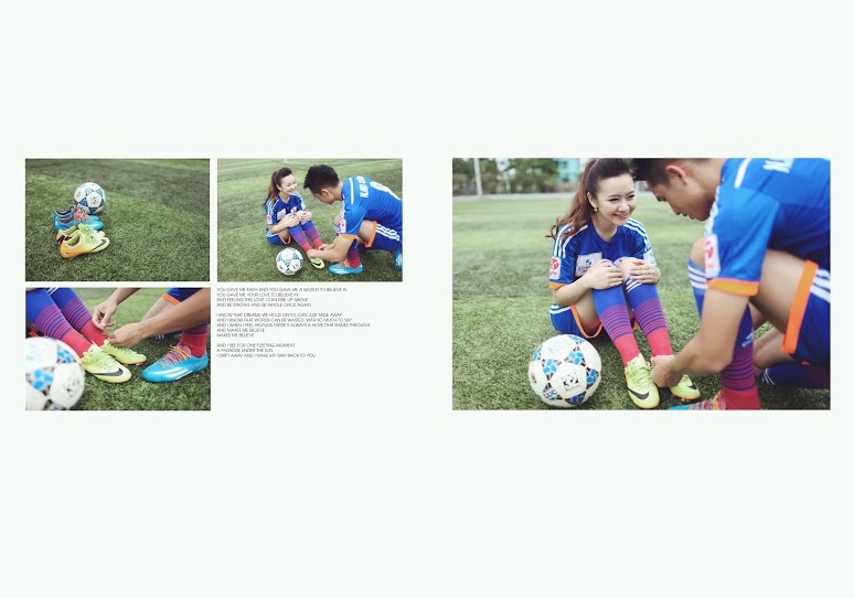 | Những khoảnh khắc đẹp trên sân cỏ là điểm nhấn của bộ ảnh cưới. |