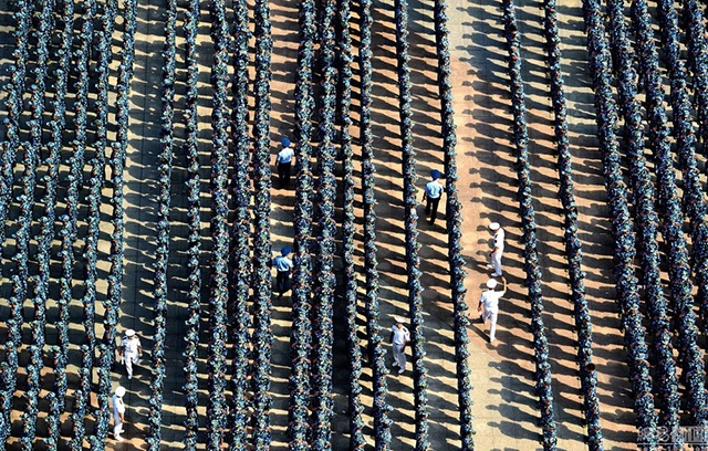 | Tháng 9/2015, hơn 9.000 tân sinh viên Đại học Vũ Hán, Trung Quốc, bắt đầu khóa huấn luyện quân sự sau khi nhập học. Đây là khoảng thời gian được nhiều bạn ưa thích, vì nó để lại kỷ niệm đẹp về thời sinh viên. Ảnh: IC |
