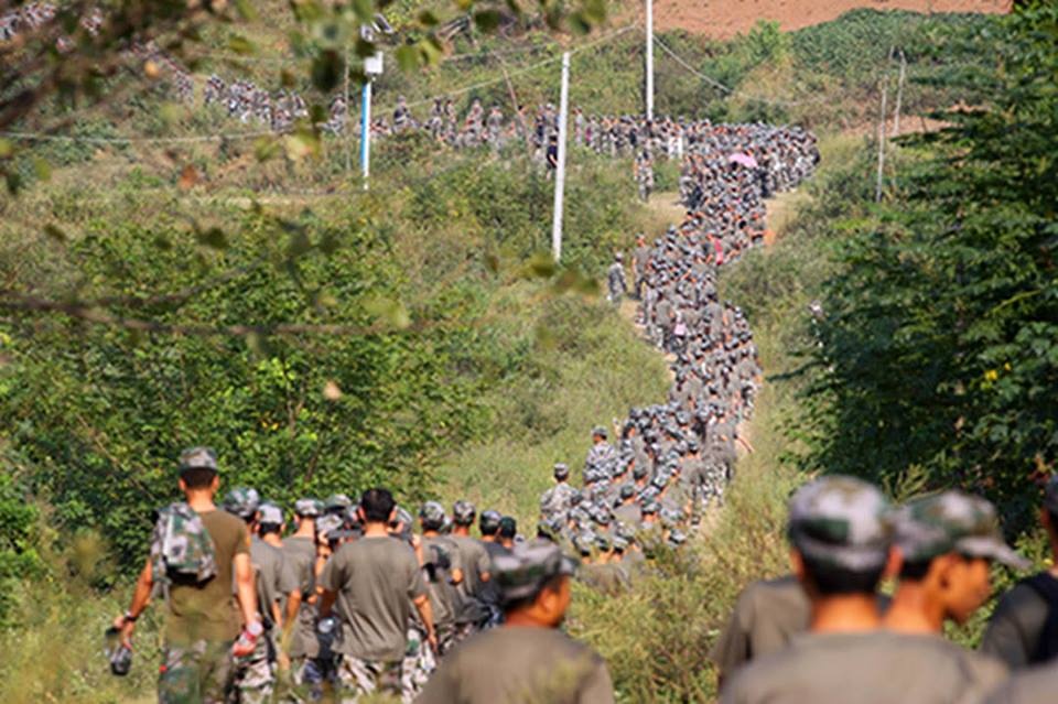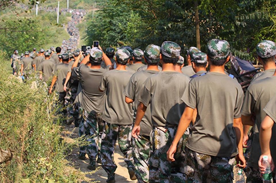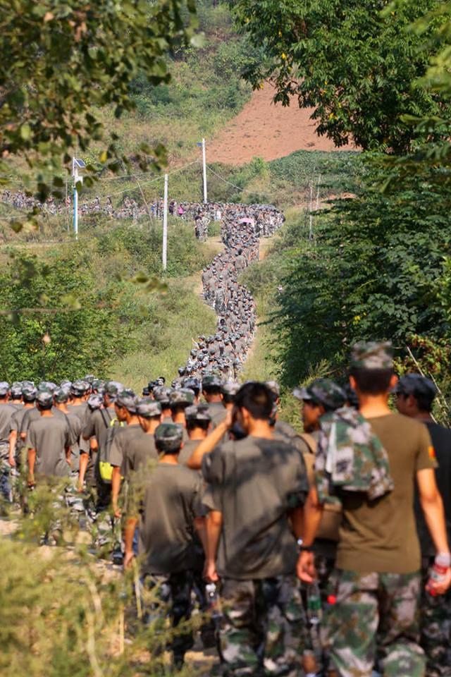 | Ngày 15/9, họ phải hành quân 10 km xung quanh một ngọn núi cạnh trường dưới sự chỉ huy của các sĩ quan quân đội. Ảnh: National Helm |