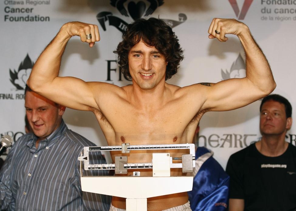 Bức ảnh ngực trần của tân Thủ tướng Justin Trudeau trước trận đấu quyền anh phục vụ mục đích từ thiện năm 2012.