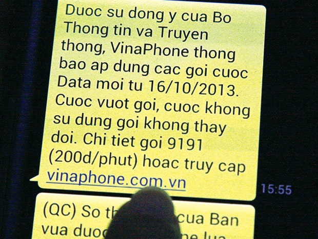 - Sinh sống ở TP.HCM, tôi mới mua sim 3G Vinaphone loại vừa nghe gọi được cho máy tính bảng Samsung Tab 2, 230k khuyến mãi hàng tháng 1GB data, khi sử dụng thấy chậm vô cùng nhiều khi đứng luôn không truy cập internet được! Chưa thấy Vinaphone khắc phục thì đã nghe sắp tăng giá rồi! (Lương Bằng, luongbang...@gmail.com)