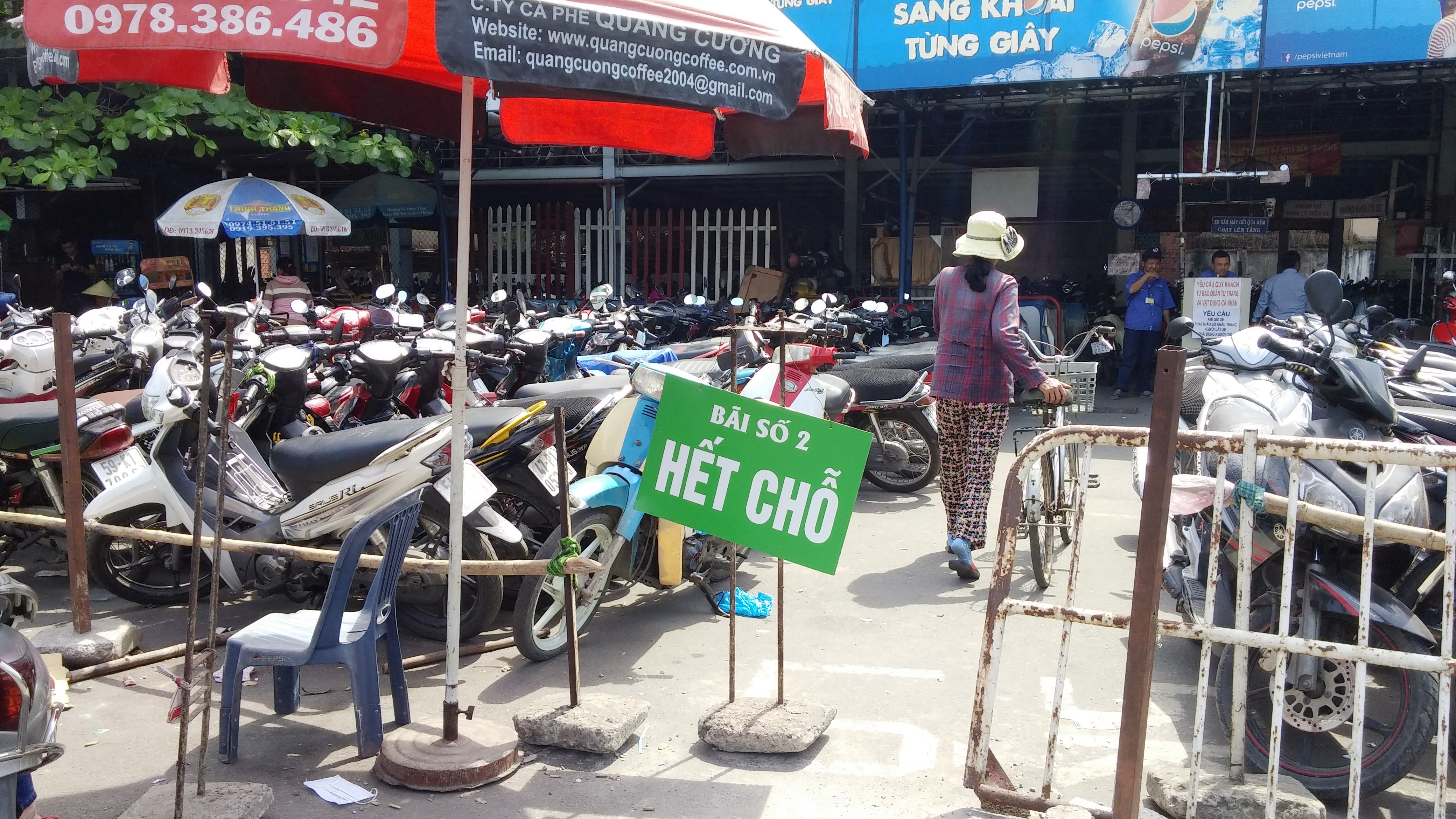 Bãi xe số 3 đường Xô Viết Nghệ Tĩnh cũng chật cứng, nhân viên đứng chắn phía trước để ngăn xe vào. Khi có người chạy xe tới nói gửi vào mua vé thì các nhân viên bảo không còn chỗ, chỉ nhận thêm vài xe gửi qua Tết.